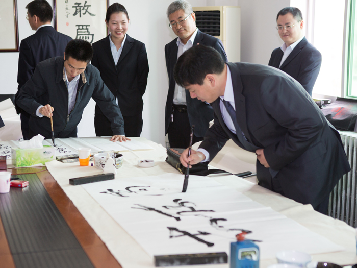 為弘揚(yáng)傳統(tǒng)文化,豐富員工業(yè)余生活,5月6日上午,中航建設(shè)集團(tuán)有限公司舉辦了首屆書(shū)畫(huà)藝術(shù)學(xué)習(xí)交流活動(dòng)。本次活動(dòng)邀請(qǐng)了中國(guó)書(shū)法家協(xié)會(huì)會(huì)員孟云飛博士、中國(guó)書(shū)法家協(xié)會(huì)理事張銅彥先生、中國(guó)書(shū)法家協(xié)會(huì)編輯出版委員會(huì)副主任王榮生教授、人民藝術(shù)家協(xié)會(huì)理事于瑛先生等國(guó)內(nèi)知名書(shū)畫(huà)大師,各位書(shū)畫(huà)大師在活動(dòng)現(xiàn)場(chǎng)進(jìn)行了藝術(shù)創(chuàng)作表演,揮毫潑墨,交流技藝,為中航建設(shè)集團(tuán)有限公司留下了數(shù)十副墨寶,還對(duì)部分員工的書(shū)畫(huà)作品進(jìn)行了悉心指導(dǎo)。公司員工現(xiàn)場(chǎng)欣賞了書(shū)畫(huà)大師的藝術(shù)創(chuàng)作,并聆聽(tīng)了有關(guān)書(shū)畫(huà)藝術(shù)鑒賞知識(shí)的介紹,部分員工還在活動(dòng)現(xiàn)場(chǎng)進(jìn)行創(chuàng)作,聽(tīng)取書(shū)畫(huà)大師的講解示范和點(diǎn)評(píng)。
