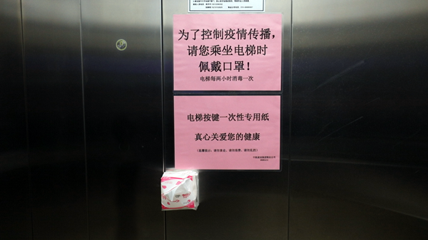 (電梯間配備紙巾防止病毒傳播)