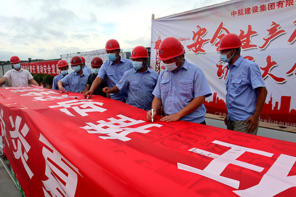 6月4日,中航建設(shè)集團(tuán)承建的廣州納米生物安全中心項(xiàng)目部舉行“安全生產(chǎn)月”宣誓暨夏日送清涼活動(dòng)。中航建設(shè)集團(tuán)南方工程有限公司執(zhí)行董事張逸浩,總經(jīng)理、項(xiàng)目總指揮徐剛,南方公司、納米項(xiàng)目部全體員工以及各專(zhuān)業(yè)分包、勞務(wù)分包等參建單位管理人員和工人代表參加活動(dòng)。