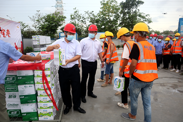 執(zhí)行董事張逸浩在致辭中表示,廣州地區(qū)已進(jìn)入高溫天氣模式,集團(tuán)公司及南方公司一直心系工作在一線的同事和廣大工友,本次“送清涼”活動(dòng)就是貫徹以人為本,關(guān)心員工生活,促進(jìn)安全生產(chǎn)的重要舉措。他希望廣納生物安全中心項(xiàng)目部在抓好工程施工管理的同時(shí),切實(shí)做好高溫防暑降溫工作。面對(duì)疫情和汛期,大家要提高警惕,切勿麻痹大意,積極做好防疫、防暑、防汛工作,高質(zhì)量完成集團(tuán)公司賦予的光榮任務(wù)。