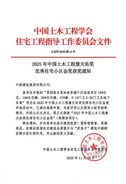 詹天佑獎(jiǎng)優(yōu)秀住宅小區(qū)金獎(jiǎng)——是經(jīng)國家科技部批準(zhǔn)、住建部認(rèn)定的中國土木工程領(lǐng)域最高獎(jiǎng)項(xiàng)之一,此番斬獲這一行業(yè)重量級(jí)榮譽(yù),是集團(tuán)公司堅(jiān)守匠心筑造,踐行高質(zhì)量發(fā)展理念的有力彰顯,更是我們?cè)诔鞘懈骂I(lǐng)域綜合實(shí)力與民生責(zé)任擔(dān)當(dāng)?shù)臋?quán)威印證。