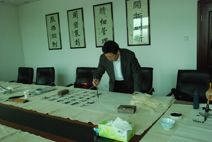 為弘揚(yáng)傳統(tǒng)文化,豐富員工業(yè)余生活,5月6日上午,中航建設(shè)集團(tuán)有限公司舉辦了首屆書(shū)畫(huà)藝術(shù)學(xué)習(xí)交流活動(dòng)。本次活動(dòng)邀請(qǐng)了中國(guó)書(shū)法家協(xié)會(huì)會(huì)員孟云飛博士、中國(guó)書(shū)法家協(xié)會(huì)理事張銅彥先生、中國(guó)書(shū)法家協(xié)會(huì)編輯出版委員會(huì)副主任王榮生教授、人民藝術(shù)家協(xié)會(huì)理事于瑛先生等國(guó)內(nèi)知名書(shū)畫(huà)大師,各位書(shū)畫(huà)大師在活動(dòng)現(xiàn)場(chǎng)進(jìn)行了藝術(shù)創(chuàng)作表演,揮毫潑墨,交流技藝,為中航建設(shè)集團(tuán)有限公司留下了數(shù)十副墨寶,還對(duì)部分員工的書(shū)畫(huà)作品進(jìn)行了悉心指導(dǎo)。公司員工現(xiàn)場(chǎng)欣賞了書(shū)畫(huà)大師的藝術(shù)創(chuàng)作,并聆聽(tīng)了有關(guān)書(shū)畫(huà)藝術(shù)鑒賞知識(shí)的介紹,部分員工還在活動(dòng)現(xiàn)場(chǎng)進(jìn)行創(chuàng)作,聽(tīng)取書(shū)畫(huà)大師的講解示范和點(diǎn)評(píng)。