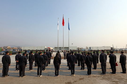 上午7時45分,在集團(tuán)公司總經(jīng)理王建紅的帶領(lǐng)下,全體人員整裝列隊,肅立以待。8時08分,一輪蓬勃的春日青陽當(dāng)空閃耀,伴著雄渾的義勇軍進(jìn)行曲,鮮艷的五星紅旗冉冉升起,迎風(fēng)飄揚。