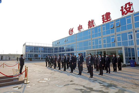 2020年4月10日,中航建設(shè)集團(tuán)在腦認(rèn)知功能圖譜與類腦智能交叉研究平臺剛剛落成的項目部辦公樓前舉行莊嚴(yán)的升旗儀式,機(jī)關(guān)副部長級以上、分(子)公司經(jīng)理級以上管理人員及項目部成員參加。