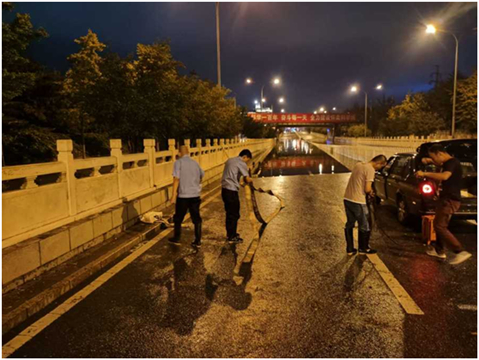 19時(shí)30分,區(qū)住建委傳達(dá)防汛排澇應(yīng)急搶險(xiǎn)救援命令:“萬(wàn)星市場(chǎng)鐵路橋涵下,積水十分嚴(yán)重,行人車輛都無(wú)法通過(guò),給市民造成不便和危險(xiǎn)。搶險(xiǎn)隊(duì)需前往抽干積水、清除淤積雜物。”接到命令后,集團(tuán)公司立即響應(yīng)區(qū)住建委號(hào)召,迅速啟動(dòng)“防汛應(yīng)急預(yù)案”,由集團(tuán)公司副總經(jīng)理、總工程師陳勁親自披掛上陣,全面部署極端天氣下的應(yīng)急處置工作。為確保當(dāng)天搶險(xiǎn)工作順利開展,由集團(tuán)公司承建的101中學(xué)懷柔校區(qū)擴(kuò)建項(xiàng)目應(yīng)急搶險(xiǎn)隊(duì)立即進(jìn)入備戰(zhàn)狀態(tài)。項(xiàng)目經(jīng)理、搶險(xiǎn)隊(duì)隊(duì)長(zhǎng)張二祥快速組織13名防汛值班隊(duì)員將防汛物資、設(shè)備裝車,第一時(shí)間奔赴搶險(xiǎn)點(diǎn),按預(yù)案分工有條不紊進(jìn)行設(shè)備安裝積水抽排。經(jīng)過(guò)一個(gè)半小時(shí)的艱辛努力,萬(wàn)星市場(chǎng)鐵路橋涵下終于恢復(fù)原貌,市民和車輛順利通行,搶險(xiǎn)隊(duì)順利圓滿完成了應(yīng)急搶險(xiǎn)救援任務(wù),得到了廣大市民和區(qū)住建委的一致好評(píng)。