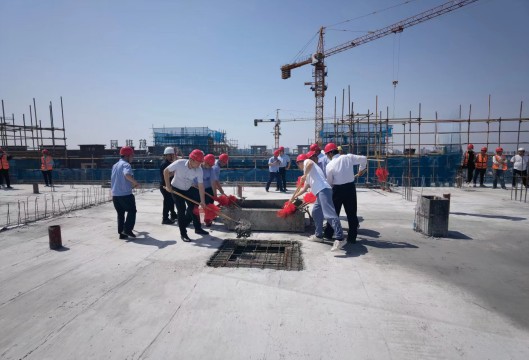 在現(xiàn)場(chǎng)領(lǐng)導(dǎo)與嘉賓的共同見證下,伴隨最后一方混凝土澆筑到位,中航·琪園項(xiàng)目順利封頂。